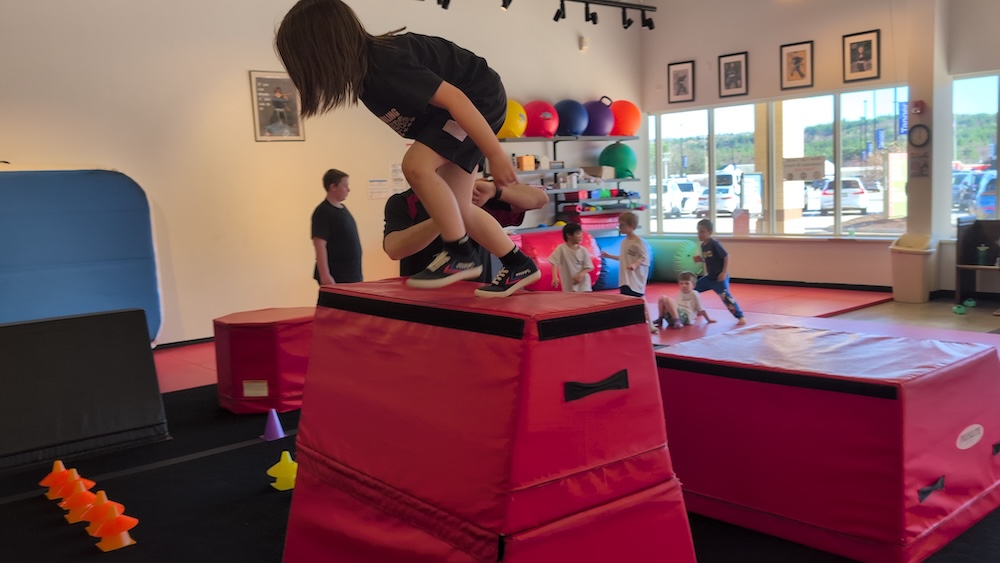 Class goals: listening skills, fundamental movement, coordination, fine and gross motor skill development, body awareness, and our Parkour e character-building component